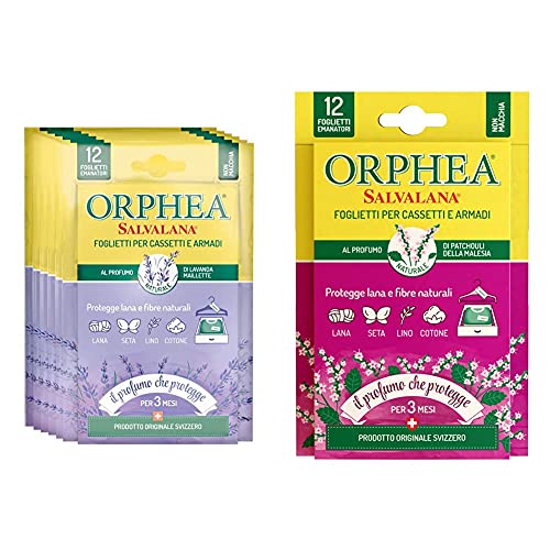 Orphea Salvalana, Foglietti Emanatori Per Cassetti E Armadi, Per Lana E Vestiti Tutta La Stagione & Patchouli Salvalana, Cassetti E Armadi 12 Foglietti, Fragranza Malesia