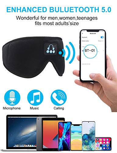ORROKER Cuffie per il sonno Maschera per gli occhi Bluetooth, Maschera per il sonno 3D Maschera per gli occhi con musica wireless Bluetooth 5.0 per chi dorme sul fianco con altoparlanti stereo HD
