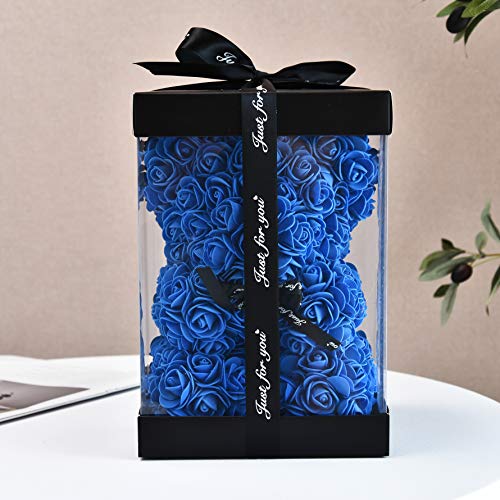AZXU - Orsacchiotto composto da rose artificiali, per anniversari, regalo per mamma, confezione regalo trasparente inclusa - Blu reale
