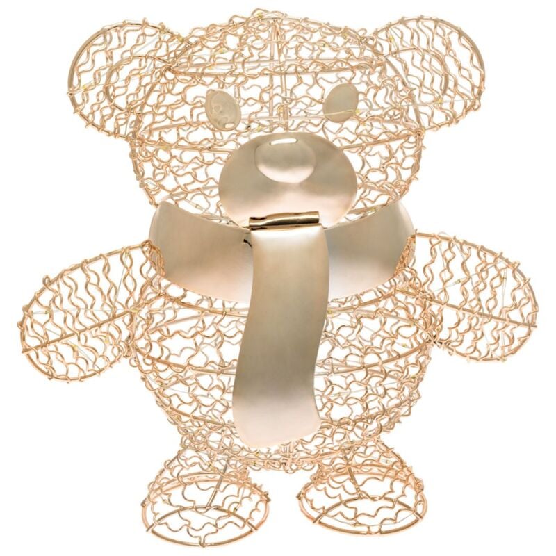 Questa simpatica figura farà felici i bambini, che potranno utilizzare questa decorazione anche durante tutto l'anno, non solo a Natale. A Natale è un ottimo soprammobile, perfetto anche da mettere sotto l'albero tra i regali. Durante l'anno è un'originale luce d'atmosfera per la cameretta dei bambini. È accompagnato da un portabatterie ma puoi decidere di alimentarlo a corrente. In questo caso ti serve il trasformatore Cod. 67011 (vd. accessori consigliati). Se lo desideri puoi ricorrere anche a un telecomando (vd. accessori consigliati Cod. 67004) per gestirne il funzionamento a distanza. Questo va utilizzato in un raggio che non superi i 4 metri e può gestire fino a 5 decorazioni della stessa serie. Questo orsacchiotto, disponibile in quattro versioni, fa parte di una più vasta collezione di decorazioni luminose in metallo lucido che include alberi, stelle 3D e puntali per albero. È quindi possibile abbinarlo a decorazioni dello stesso stile. L'addobbo è in metallo traforato lucido