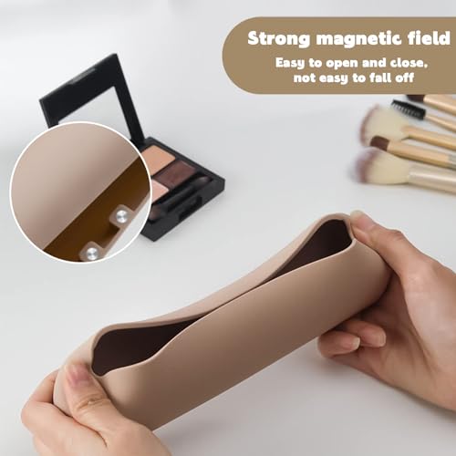 【Design Ergonomico】Il borsa per pennelli cosmetici in silicone ha un design ergonomico, con un'apertura magnetica laterale per prendere comodamente i prodotti di trucco senza il rischio di rovesciarli.