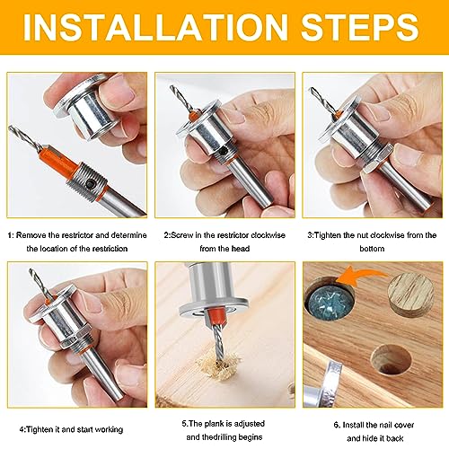 ❤️【Regolabile】Utilizzando la chiave esagonale fornita, rimuovere le viti e regolare la lunghezza del foro a gradini per ottenere una lunghezza di perforazione personalizzata per le viti di diverse lunghezze. Il punte legno con svasatore è dotato di un fermo di profondità per evitare la penetrazione e migliorare l'efficienza del lavoro.