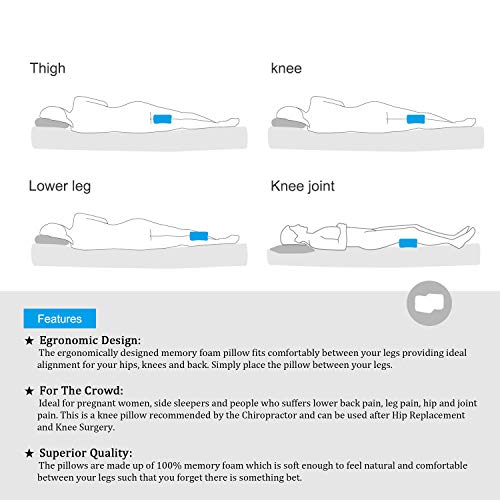 Memory Foam di alta qualità: i cuscini per ginocchio sono composti da 100% memory foam viscoelastico che è abbastanza morbido da sentirsi naturale e confortevole tra le gambe in modo da dimenticare che dopo un po 'c'è qualcosa tra le ginocchia. Tuttavia, questi cuscini per ginocchio hanno abbastanza rigidità per aiutare a fornire l'edificazione necessaria della parte superiore del ginocchio per aiutare a raggiungere l'allineamento richiesto.
