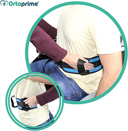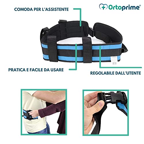 OrtoPrime Cintura di Trasferimento per Disabili - Imbracatura di Trasferimento - Cinghie di Sicurezza per Anziani con 4 Maniglie - Sollevatore Anziani Disabili dal Letto