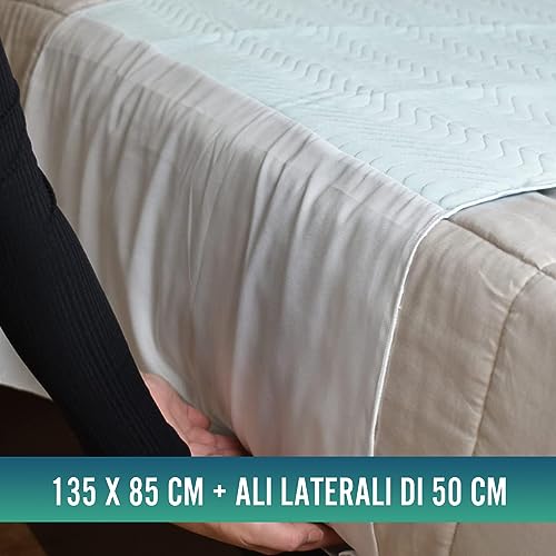 OrtoPrime Traversa Impermeabile Letto Singolo - Traverse Anziani 135 cm 3.15 litri - Oltre 200 lavaggi - Coprimaterasso assorbente 4 strati - Cerata Lettino Bambini con Ali 90 x 85