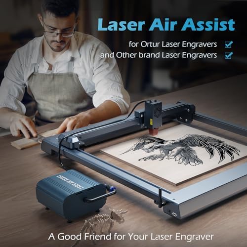 ORTUR Air Assist Pump regolabile 50L/min potenza supporto aria per laser Master 3 e 2PRO S2 LU2-4 laser taglierina e incisore, superficie pulita e bordo liscio protegge la lente laser