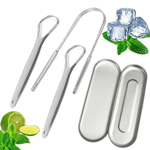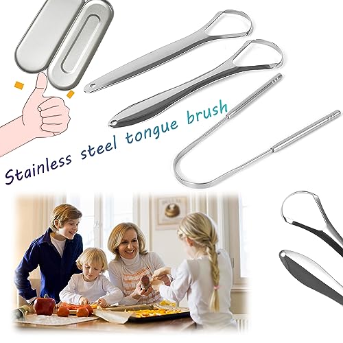 Oruiiju Pulisci Lingua, Set da 3 Pezzi in Acciaio Inossidabile con Custodia, Utile per Bambini e Adulti, Riutilizzabile e Multifunzionale per Ridurre l'Alito Cattivo e Migliorare l'Igiene Orale