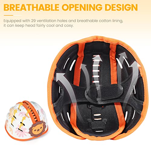 Orzbow Caschetto Primi Passi,Traspirante Casco Neonato Paracolpi,Leggero Infantili Cappello di Testa,Regolabile Protezione Testa Bambino per Bambini da 6 a 24 Mesi (Arancione Leone)