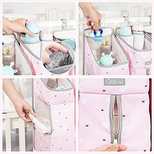 Orzbow XL Pannolino Organizzatore,Borsa per Culla Multifunzionale da Appendere,Organizzatore Portapannolini per Presepe Sospeso,Organizer per Oggetti Essenziali Neonati e Regali per Baby Shower (Rosa)