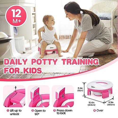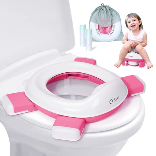 Orzbow Vasino Portatile per Bambini da Viaggio,Stabile Vasino per Bambini WC con 40 Borsa per Vasino,Riduttore Wc per Bambini con Borsa da Viaggio per Uso Interno ed Esterno (Rosa)