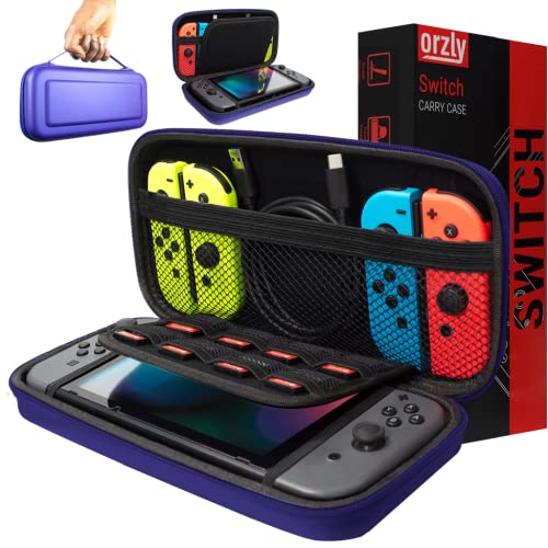 Orzly Custodia da Trasporto Compatibile con Nintendo Switch e New Switch Console OLED - Blu Custodia Protettiva da Viaggio Portatile Rigida Custodia a Conchiglia con Tasche per Accessori e gioch