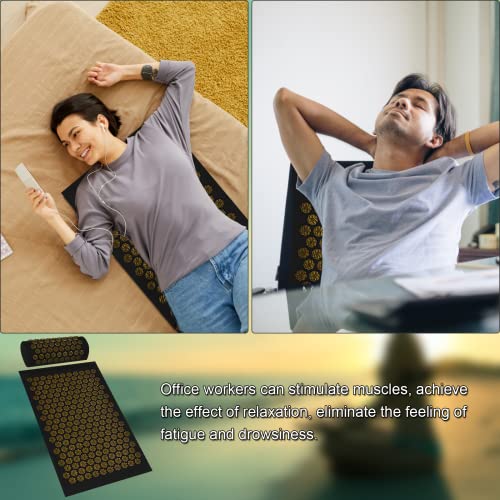 Osail - Tappetino per agopressione e cuscino con 2 sfere massaggianti a punta, tappetino da yoga con cuscino per massaggio e riduzione dello stress, con borsa per il trasporto (oro)