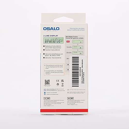 OSALO Calcolatrice scientifica 240 funzioni Display a 2 linee con coperchio scorrevole per scuola secondaria (OS 82MS Pro)...