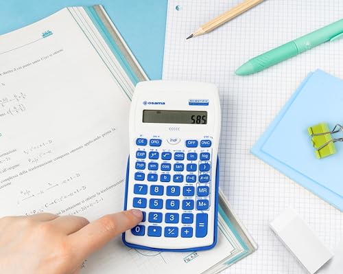 CALCOLATRICE SCIENTIFICA IDEALE PER SCUOLA, UFFICIO E UNIVERSITÀ: La calcolatrice scientifica OSAMA effettua un'ampia varietà di calcoli con 56 funzioni, 10 cifre in mantissa e 2 in esponente, disponibile in Blister da 1 pezzo. Perfetta per essere utilizzata a scuola, ufficio e università, con comodo formato 9,6x2x16,3 cm pratico da trasportare