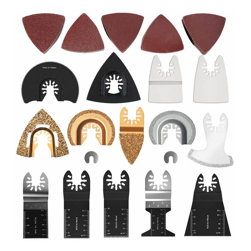 Prestazioni eccellenti - La lama affilata può tagliare rapidamente legno e metallo. Grazie al design a sgancio rapido, è adatto per multiutensili con meccanismo di sgancio rapido [Compatibilità generale] Si adatta alla maggior parte delle marche, tra cui Black & Decker, Fein, Milwaukee, Ridgid, Rockwell, Einhell, Porter Cable, Worx ecc. Ma non è compatibile con Bosch MX30, Dremel MM40 e MM45, Fein Starlock. (Se non puoi confermare la compatibilità con il tuo strumento, ti preghiamo di confermare con noi prima dell'acquisto) [Accessori per utensili multifunzionali da 25 pezzi] Comprese lame in legno/metallo, spatola, carta vetrata, lime, raschietti, cuscinetti abrasivi, ecc. Gli accessori soddisfano varie esigenze negli ambienti fai-da-te e di manutenzione [Ampie applicazioni] Questo armadio è adatto per lavori generali come fresatura, raschiatura, segatura, taglio, levigatura e lucidatura di vari materiali (legno, plastica, metallo, cartongesso) [Alta qualità] Costruito in acciaio