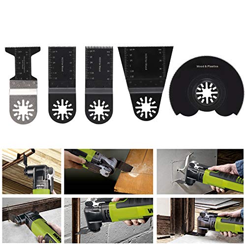 Cosa include il set? 1 lama per sega universale termometrica da 44 mm, 1 lama per sega a denti fini da 34 mm, 1 lama per sega a denti fini da 67 mm, 1 lama per sega oscillante universale di precisione giapponese da 33 mm, 1 sega piatta semicircolare da 90 mm Lama.
