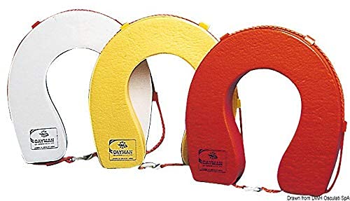 Realizzata in ethafoam flessibile espansa rivestita in PVC. Versione boa semplice solo che può essere completata con un supporto in acciaio inox o una sacca portaoggetti in PVC per l'aggancio al pulpito tramite cinghie regolabili con accessori venduti con supporto in acciaio inox 22.418.00 + braccio per lampeggiante 30.584. 01 + luce faro 30.584.00.