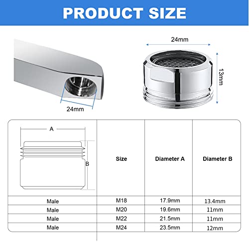 ✔️【Contenuto della Confezione】6 filtri M24 per rubinetto + 6 guarnizioni (Attenzione: solo gli aeratori M24 sono dotati di 1 chiave inglese). Ideale per il rubinetto con una filettatura interna.