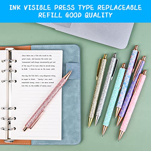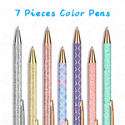 OSDUE Penne a Sfera, 7 Pezzi Penna a Sfera in Metallo Retrattile con Corpo glitterato, Metallo Glitter Penne a Sfera in Oro Rosa per Scuola Attività Commerciale Ufficio Rifornimenti Ragazze I Regali