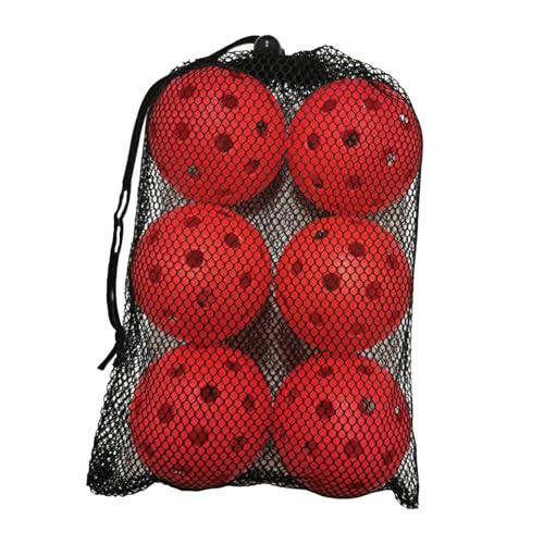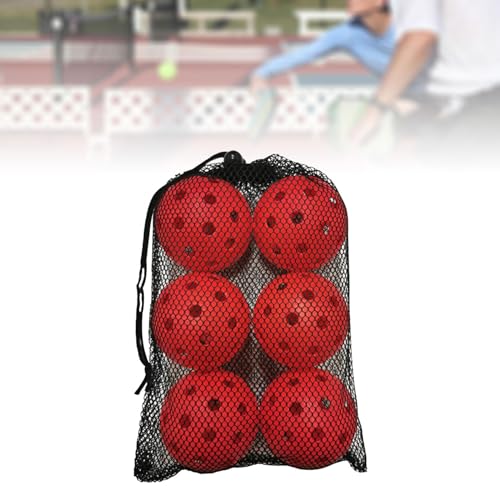 Oshhni Confezione da 6 palline da pickleball da esterno a 40 fori con borsa in rete, palline da pickleball altamente elastiche e durevoli, regali per gli, Rosso