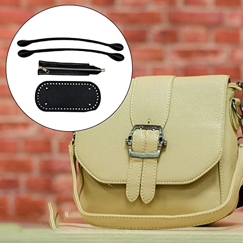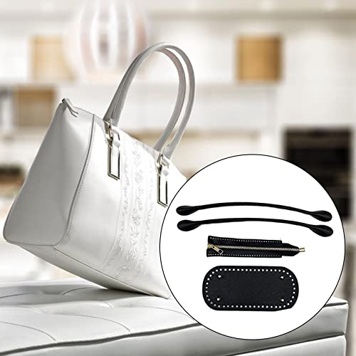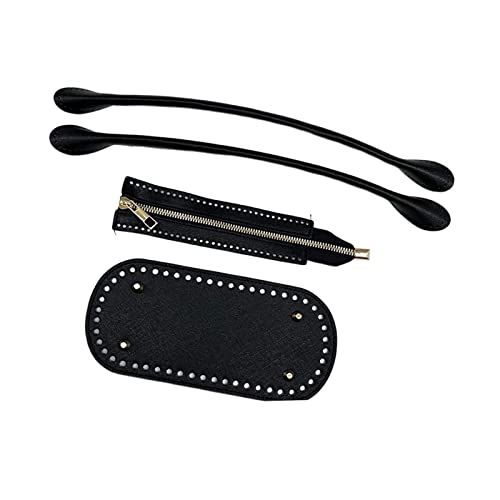 Oshhni 3 pezzi/set fondo borsa all'uncinetto con manici, fondo ovale in pelle PU con chiodi in lega per borsa fai da te, borsa all'uncinetto, borsa a, Nero