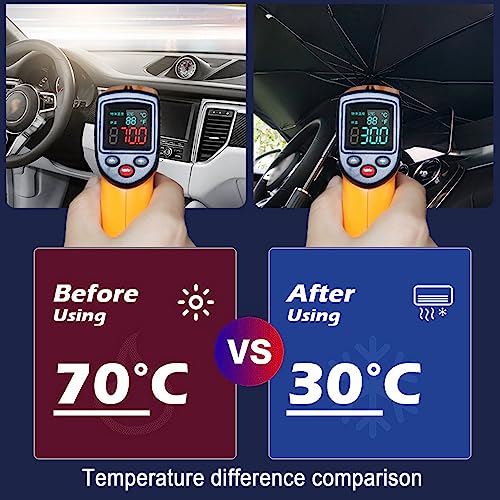 [Protezione Solare Dai Raggi UV] Il nostro ombrello parasole per auto blocca efficacemente il 99,9% dei raggi UV e UPF 50+. Non solo mantiene l'auto fresca e confortevole, ma previene anche lo sbiadimento del cruscotto e degli interni.