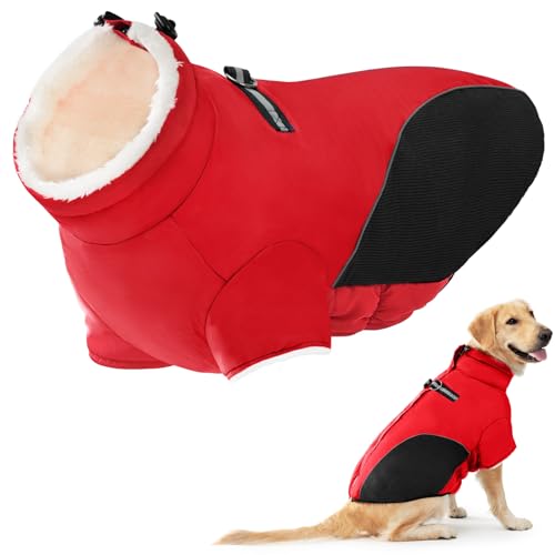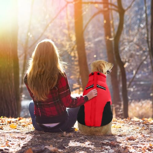Oslueidy Cane Giacche invernali Cappotti caldi, Cani antivento Vestiti, accogliente Gilet invernale Cuccioli, riflettente Cappotto con Cerniera per Cani di piccola media grande taglia (XL, Rosso)