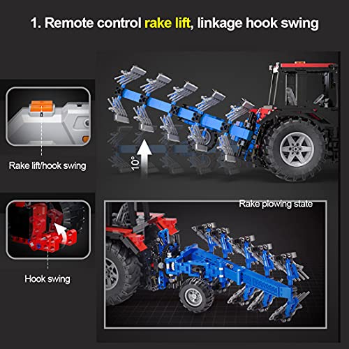 Funzioni del telecomando: dotato di motore 2M Pro, 1L motore Pro, 1 servomotore Pro, 1 scatola batteria al litio, 1 telecomando da 2,4 G. Il trattore telecomandato può guidare avanti e indietro, le ruote anteriori possono essere orientate. Controllo remoto della corsa del capannone, rotazione di 180° del capotasto e guida della ruota per simulare l'agricoltura e la guida.
