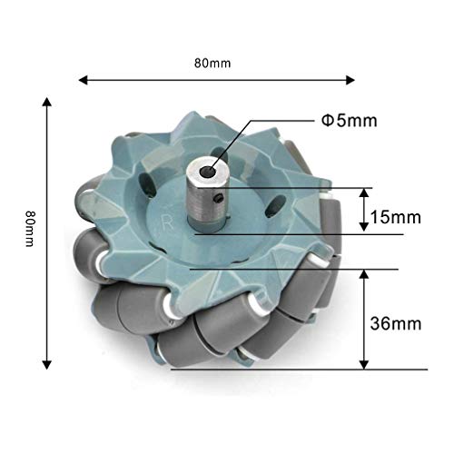 Questo 4 ruote mecanum è compatibile con tutti i motori DC con un diametro albero motore di 5 mm.