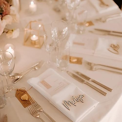 Yky Nome dell'ospite di nozze in legno tagliato al laser, segnaposto in legno per anniversario, nome posto specchio d'oro di fidanzamento (W01-P, 1 pz)