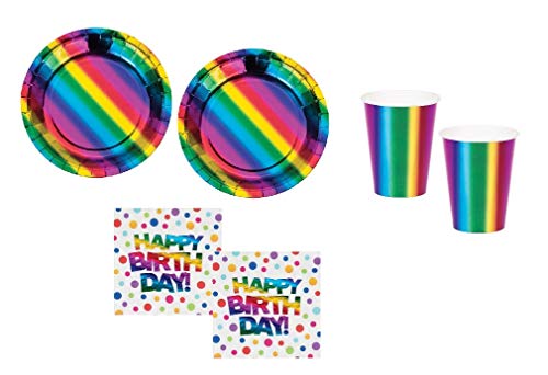 KIT 16 OSPITI RAINBOW ARCOBALENO COORDINATO TAVOLA (16 PIATTI,16 TOVAGLIOLI,16 BICCHIERI,1 TOVAGLIA,1 FESTONE,1 PALLONE)