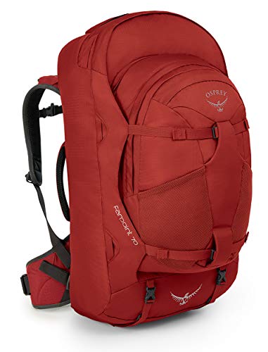 Osprey Farpoint 70, zaino da viaggio per uomo con zainetto staccabile da 13 L - Jasper Red (S/M)