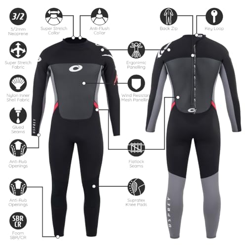Osprey Origin muta da uomo intera, spessore 3/2 mm., Uomo, Multicolore (Nero/ Rosso), X-Small