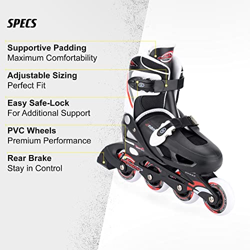 Osprey Pattini in Linea- Roller regolabili - Disponibili in varie misure - I pattini ideali per imparare per bambini e ragazzi facili da regolare e comodi da indossare. Rosso/Bianco/Nero