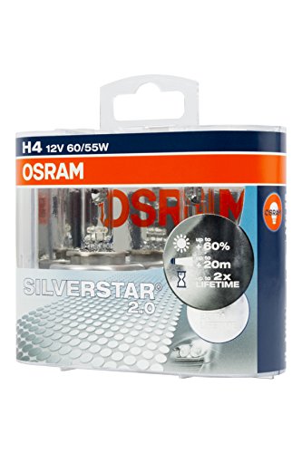 Osram 64193SV2-HCB Silverstar 2.0 H4 Lampada Alogena per Proiettori, Duobox