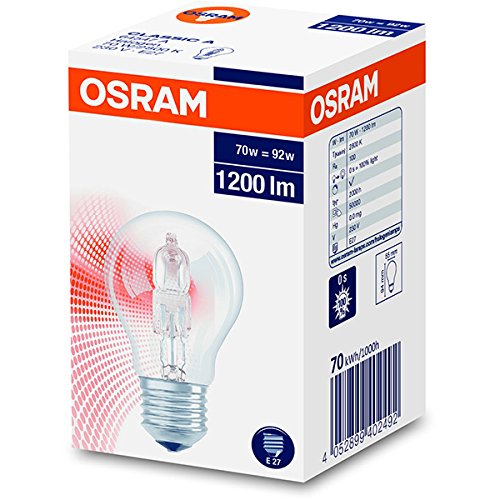 Osram Classic A Eco Lampadina alogena a forma di pera, 64547 A, CLA 70 W, quasi 100 W, E27, 230 V, luce bianca calda, dimmerabile