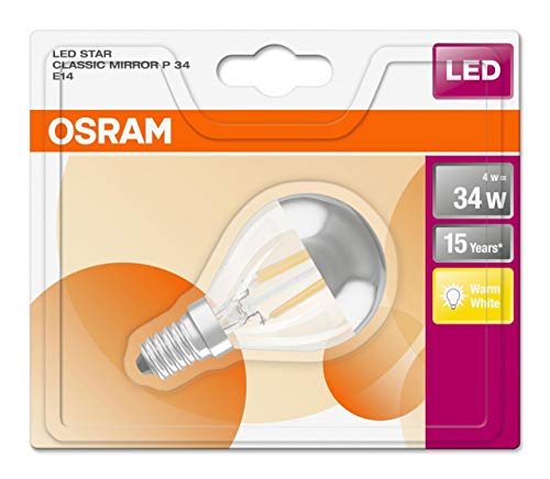 Osram Led Star Classic Mirror P34 E14, Lampadina Led 220-230v 4w 2700k E14, Bianco caldo, 380 Lumen, 78 x 45mm, standard, vetro
