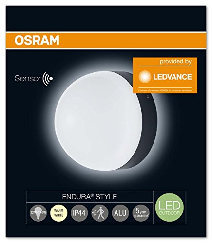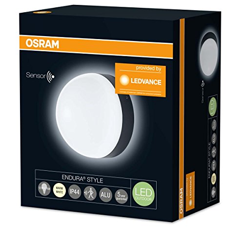 Osram Endura Style Ball Applique/Plafoniera LED per Esterni con Sensore Crepuscolare e di Movimento 12 W, Grigio