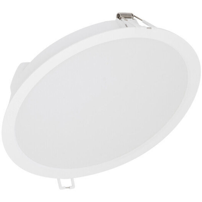 Faretto Led da incasso Osmar Ledvance con le seguenti caratteristiche: Potenza: 18W Voltaggio nominale: 220 - 240V Temperatura di colore: 4000K (luce naturale) 1800 lumen Efficacia luminosa: 100 lm/W Angolo del fascio luminoso: 100 gradi Indice di resa cromatica Ra: > 80 Driver LED integrato Forma: Tonda Colore corpo: Bianco Foro per l'installazione: 175 mm Spessore faretto: 42 mm Non dimmerabile Caratteristiche: Frequenza di rete: 50 - 60Hz Corrente nominale: 140.000 mA Corrente di spunto: 6,7 A Classe di protezione: II Materiale: Policarbonato (PC) Intervallo di temperatura ambiente: -20/+40 °C Intervallo di temperatura allo stoccaggio: -20/+80 °C Tipo di connessione: Cavo, 2 poli Tipo di protezione: IP44 Classe di protezione IK (resistenza agli urti): IK03 Tipo di montaggio: Incasso Posizione di montaggio: Soffitto Ambiente applicativo: Interno Diametro: 190 mm Altezza: 42 mm Peso: 197 grammi Colore: Bianco Tipologia: Faretti Colorazione: Naturale Forma: Tondo Grado di