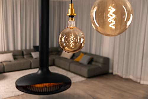 DESIGN ORO: Lampada LED vintage 1906 con filamento a spirale sottile (solo 0,6 mm) e vetro colorato oro dall'aspetto moderno (ideale per paralumi aperti o trasparenti).