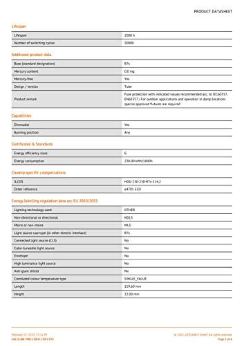 Osram Lampadina alogena R7s, 230 Watt, 117,6 mm, 64701