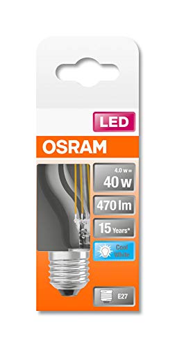 OSRAM Lampadina, Attacco: B22d, Bianca Calda, 2700 K, 4 W, Equivalenti a 40 W, LED Retrofit Classic P, Chiaro, Confezione Singola