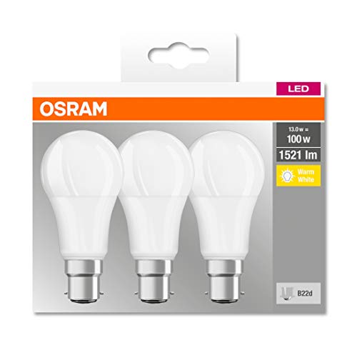 OSRAM - Lampadina LED con attacco B22d, 2700 K, 13 W, ricambio per lampadina da 100 W, luce bianca calda, opaca