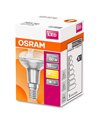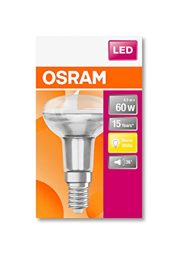 OSRAM Spot R50 Lampadine LED, 4.3 W Equivalenti 60 W, Attacco E14, Luce Calda 2700K, Confezione da 10 Pezzi