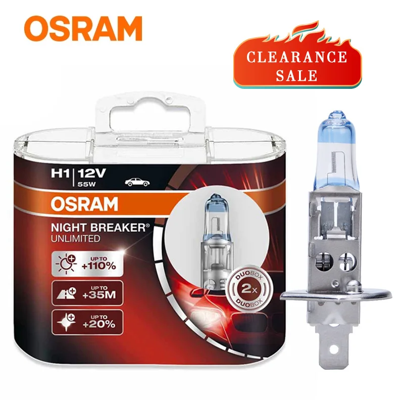OSRAM Night Breaker H1 12V 55W Car Headlight bulb Low beam High beam halogen lamp [110% brighter, color temperature 3900K]