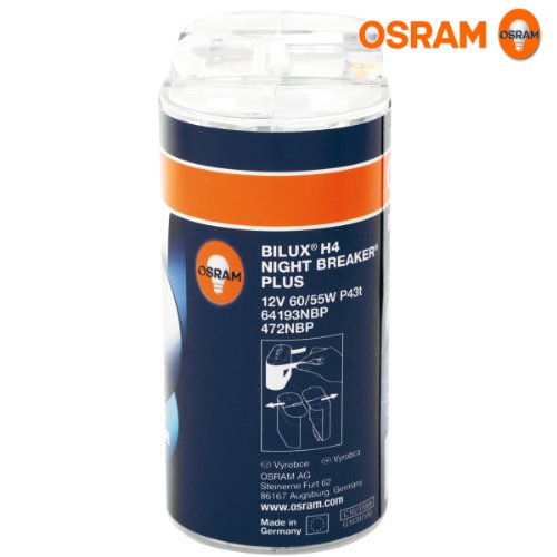 OSRAM NIGHT BREAKER PLUS H4 Lampada alogena per proiettori 64193NBP-HCB 90% in più di luce, 20% più bianca - confezione Duobox - fuori produzione