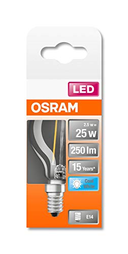 OSRAM LED Retrofit CLASSIC P Pacco da 10 x Lampadina LED, Attacco: E14, Bianca Fredda, 4000 K, 2.50 W, Equivalenti a 25 W, Opaco, LED Retrofit CLASSIC P, Chiaro, Taglia Unica