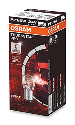OSRAM TRUCKSTAR PRO P21 / 5W, lampada di segnalazione alogena, 7537TSP, lampada per camion 24V, astuccio (10 lampade)
