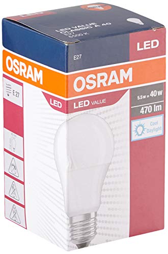 Osram Value Classic A 40. Lampadina a LED 220-240 V, 6 W, 6500 K, e27. Daylight.