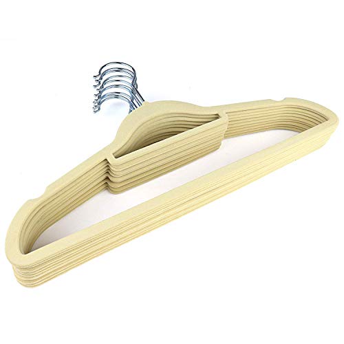 Ossian - 10 grucce appendiabiti effetto velluto, compatte, sottili, altissima qualità e antiscivolo, salvaspazio, con gancio girevole robusto, barra per pantaloni e incavi per bretelline (beige)